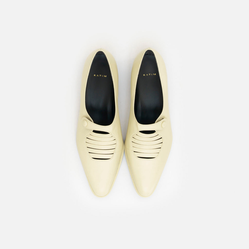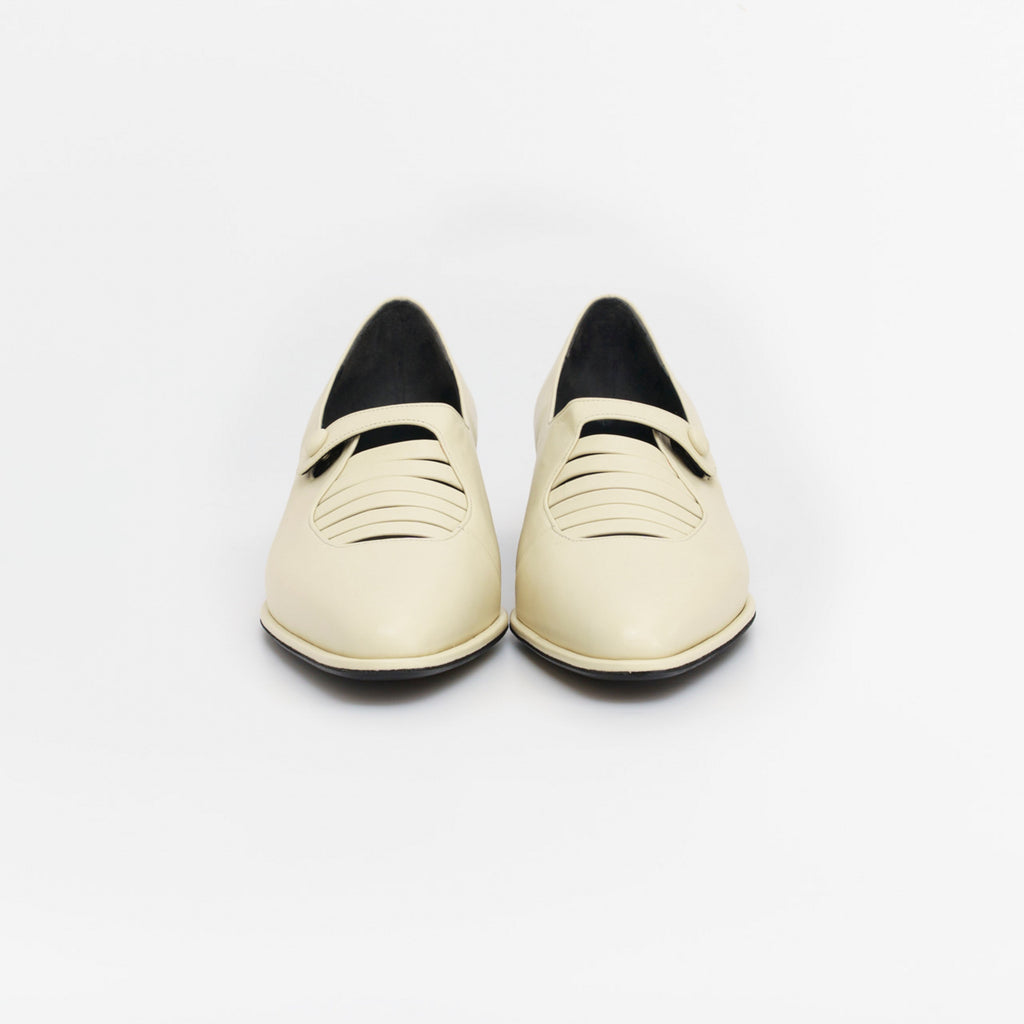 細いパーツでメリージェーンの窓を覆ったデザインが新鮮。暖かな季節には素足で涼やかに、肌寒い季節にはソックスやタイツのカラーを覗かせてオールシーズン楽しめる一足。ワイズは比較的ゆったり目、指先が圧迫されないロングノーズでTHEEDのデビューと同時に名木型とのお声を頂いているラスト2735Pを使用。足入れはTHEEDより細めの作りとなります。
