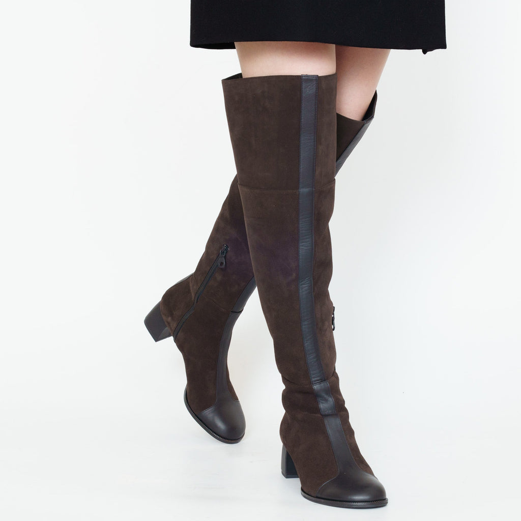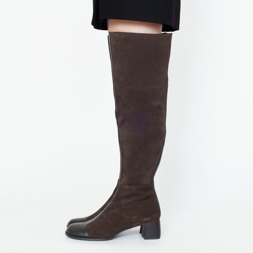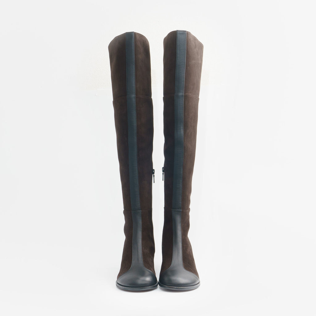 KATIMの木型の中でもリピーターの多いスーパーラウンドトウ木型KTM1450Rを使用したルースフィットサイハイブーツDEVASが登場。木の根元をイメージしたトウキャップからその幹の様に腿まで続くセンターラインのTストラップモチーフが履く人の足元を真っ直ぐかつ魅力的に演出します。ルースフィットなのでパンツインしたい方にもおすすめです。